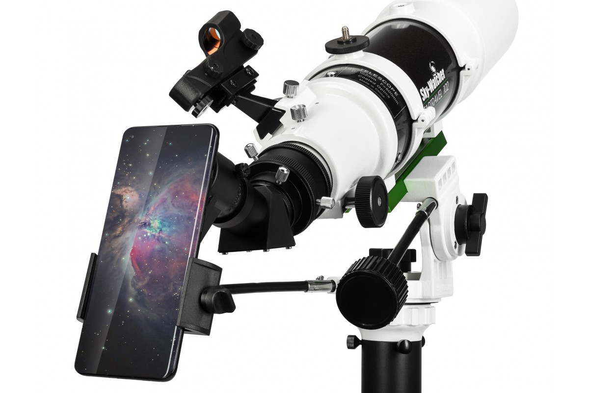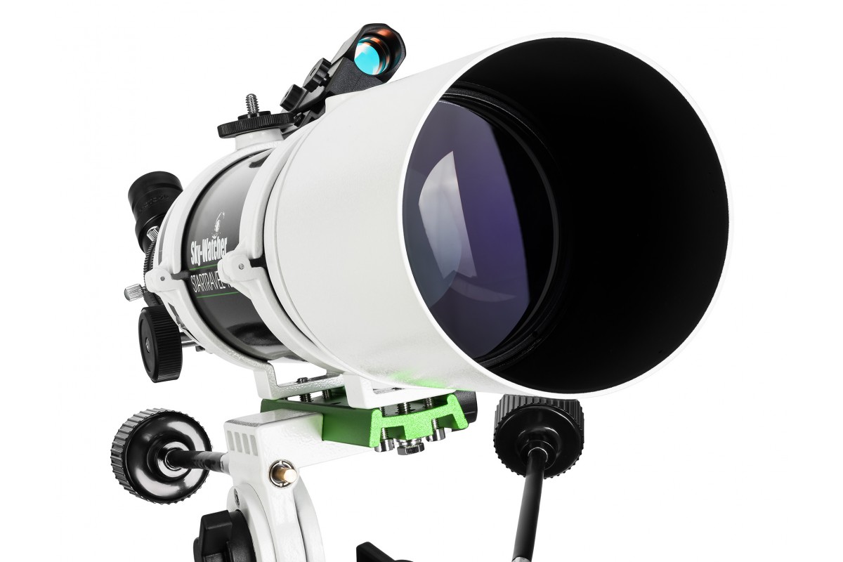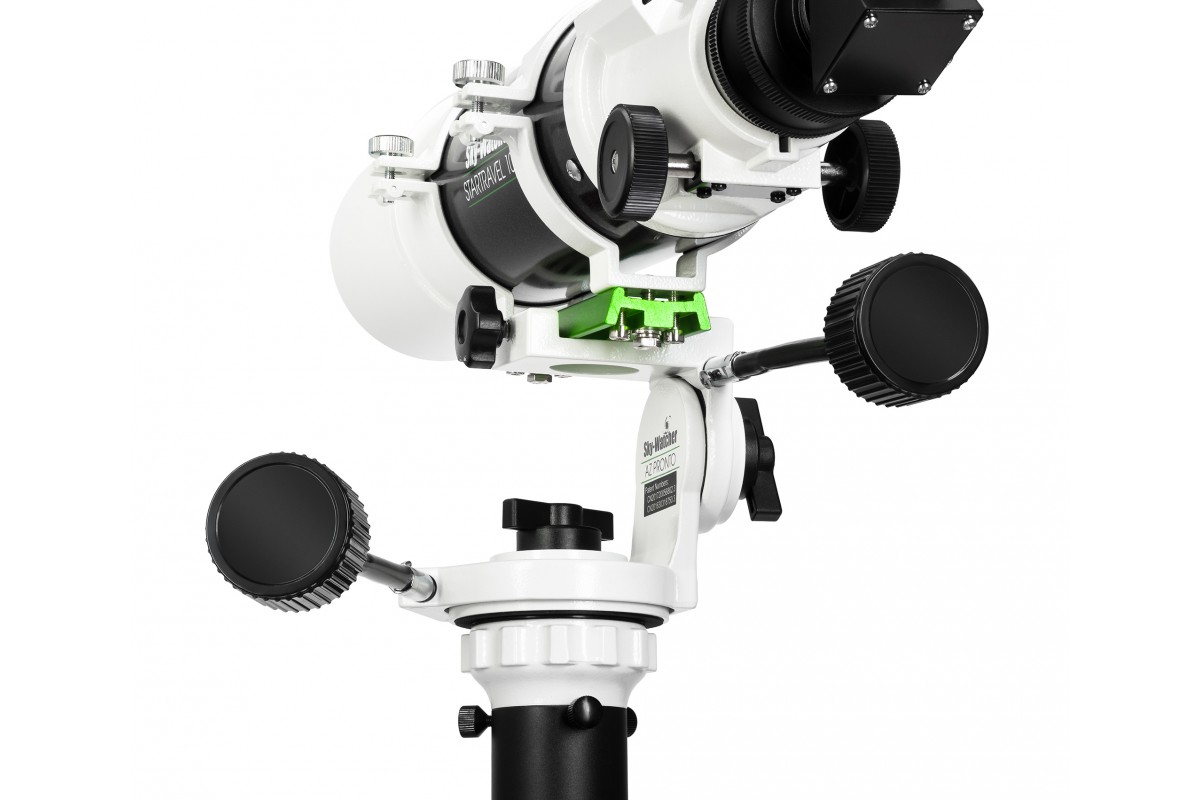 В комплекте с телескопом поставляется азимутальная монтировка AZ PRONTO, укомплектованная штативом-треногой Star Adventurer. Управление монтировкой производится вручную, мелкие перемещения инструмента осуществляются и контролируются через ручки тонких движений (2 штуки в комплекте, для движений монтировки по азимуту и высоте). AZ PRONTO имеет жесткую конструкцию, устойчивую к возникновению вибраций и колебаний, мешающих наблюдениям или астрофотосъемке на длинной выдержке. Для дополнительной страховки от люфтов и смещений в головке монтировки предусмотрены стопорные винты, фиксирующие выбранное положение инструмента. Грузоподъемность монтировки – 3 кг, во избежание поломки оборудования превышать этот показатель строго не рекомендуется.