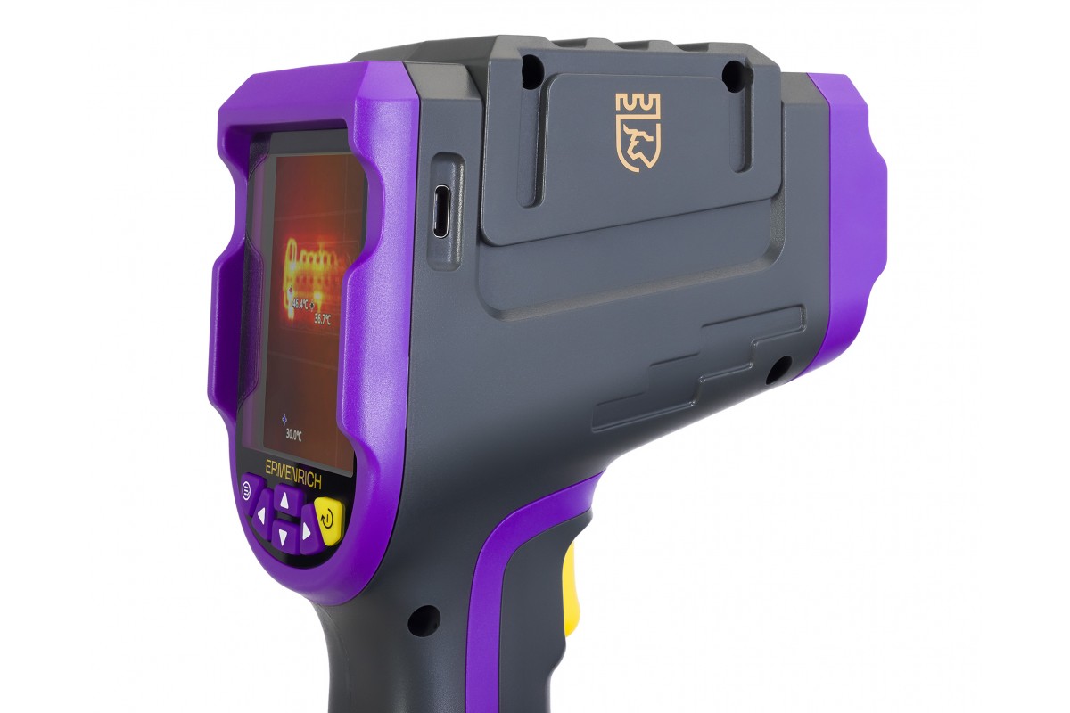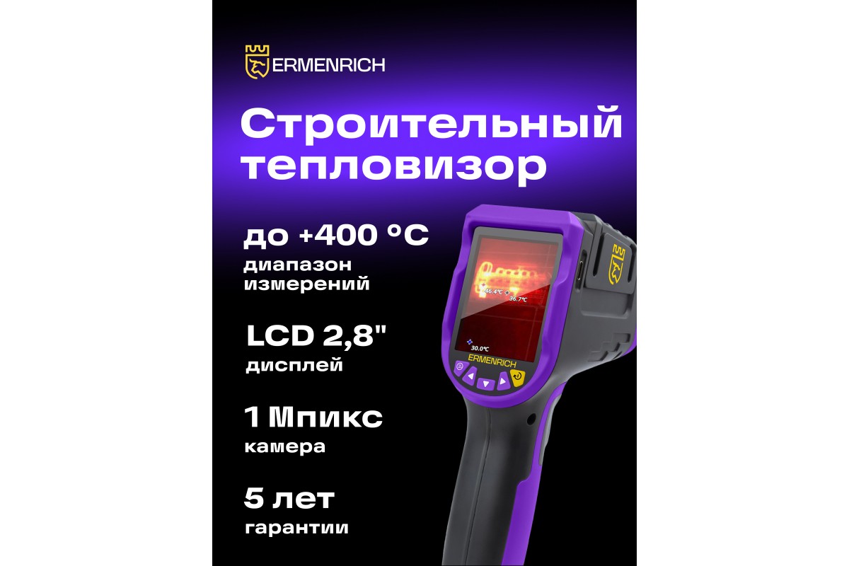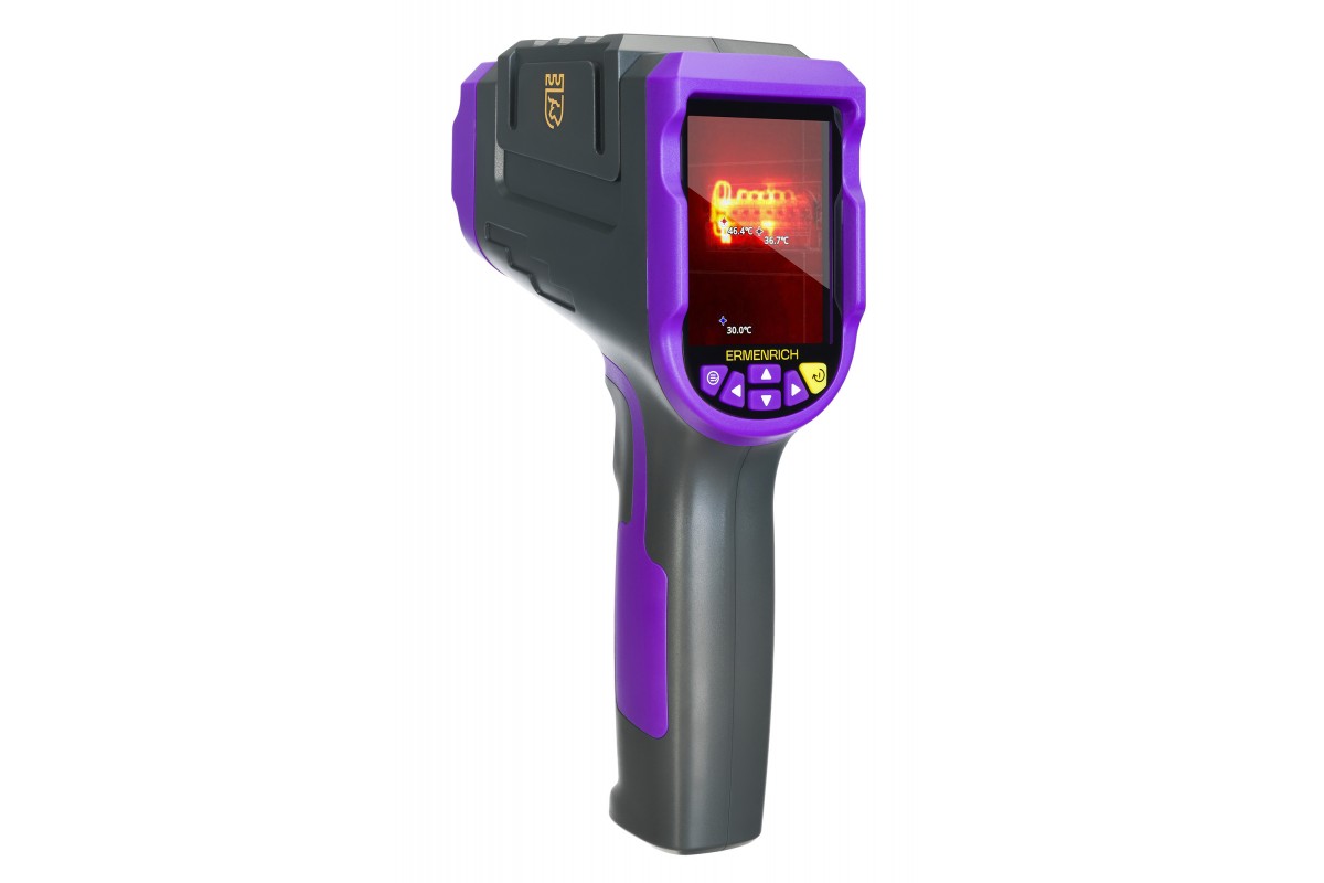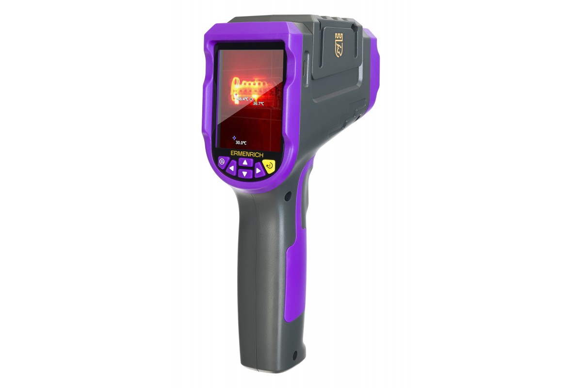 Ermenrich Seek TV70 – строительный тепловизор для обследования электрического и теплового оборудования, поиска неисправностей, утечек тепла в фасадах и фундаментах зданий. Главный элемент прибора – тепловизорный модуль 120x90 пикс с камерой 1 Мпикс, что позволяет считывать изменения температуры в диапазоне от –20 до +400 °С.