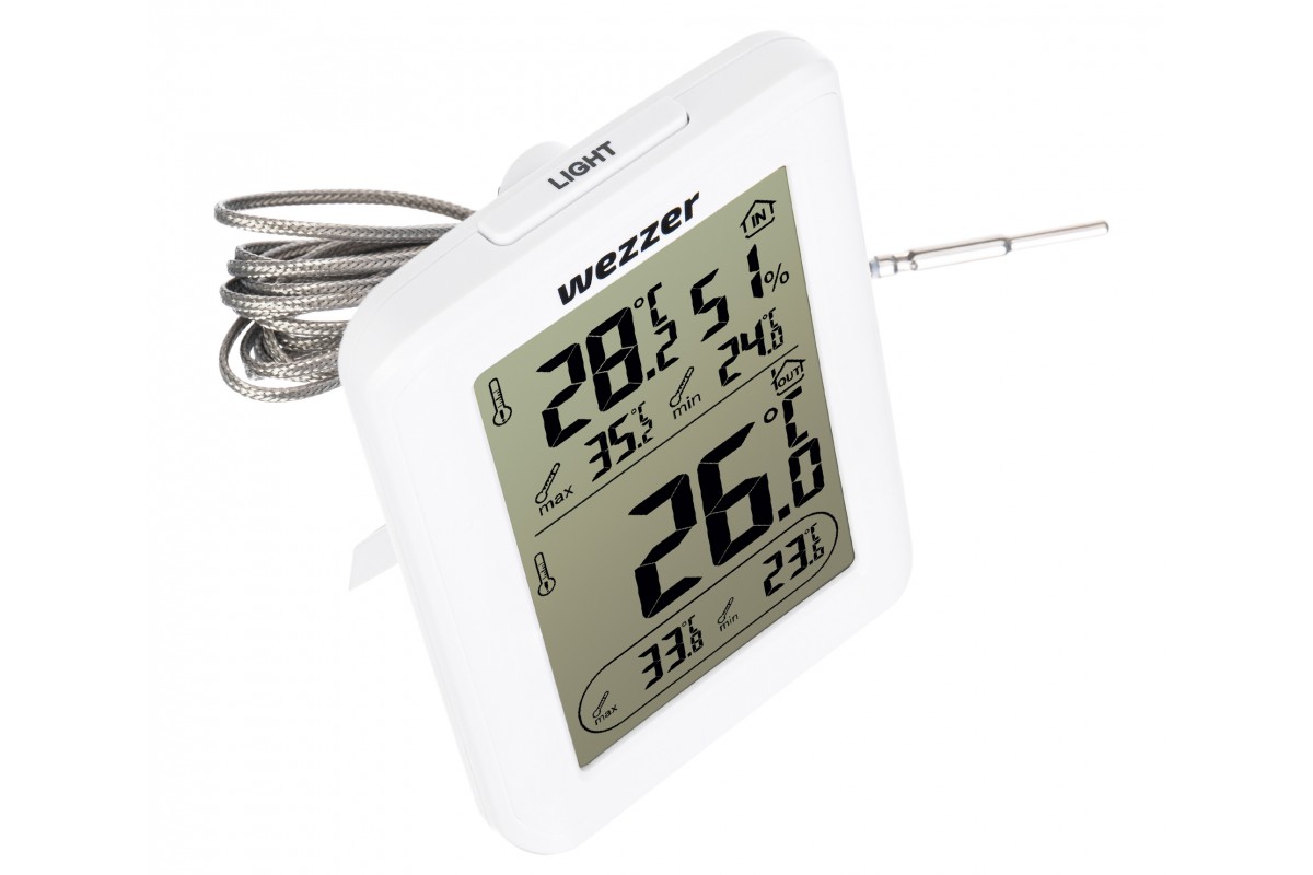 - Технические характеристики|Подсветка: есть|Особенности: отображение максимальной и минимальной температуры|Диапазон измерения: от 10 до 99%|Место использования: внутри помещения|Гигрометр (влажность воздуха): 1|По назначению: домашняя|Единицы измерения: °F
