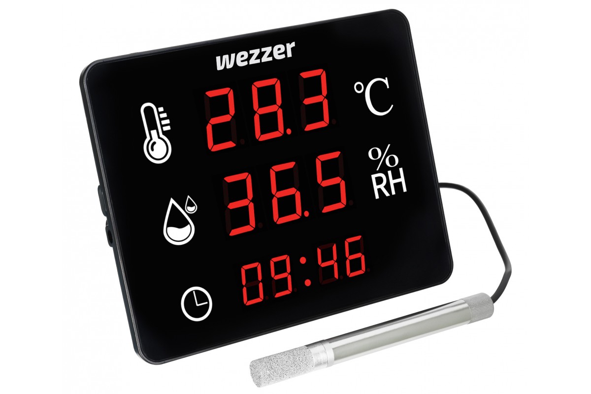 - Технические характеристики|Особенности: предупреждения о предельных значениях|Диапазон измерения: от 0 до 99%|Место использования: внутри помещения|Гигрометр (влажность воздуха): 1|По назначению: домашняя|Единицы измерения: °C|Особенности: предупреждения о предельных значениях|Формат отображения времени: 24 часа|Часы (время/дата/календарь): 1|Тип экрана: цветной|Часы: 1|Диапазон измерения в помещении: от –40 °C до +120 °C (в сауне)|Общие характеристики: 1|Дополнительно: выносной термогигрощуп на кабеле длиной 3 м|По устройству: настольная