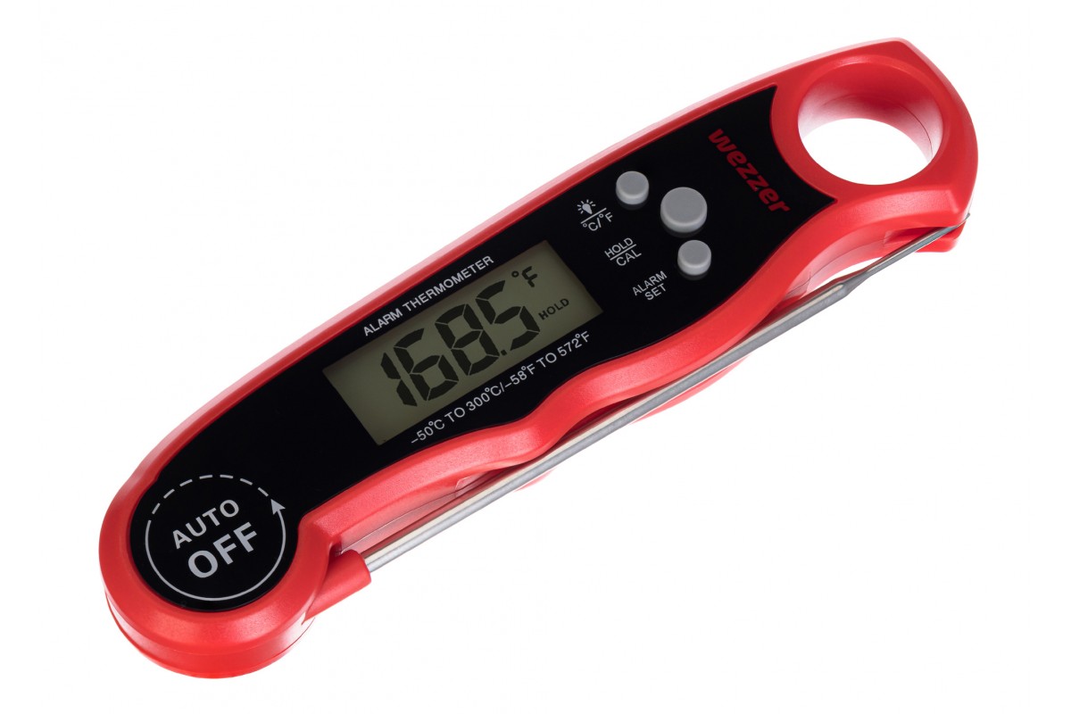 Одна из наиболее интересных и полезных функций этого термометра – возможность настроить уведомление при превышении определенной температуры. Это позволит избежать пересушивания блюд и, более того, их случайного подгорания. Также здесь присутствует функция «hold», предназначенная для фиксации текущей температуры. Для работы с прибором используется кнопочное управление, вынесенное в зону рядом с экраном. Сам экран имеет крупную индикацию, есть подсветка.
