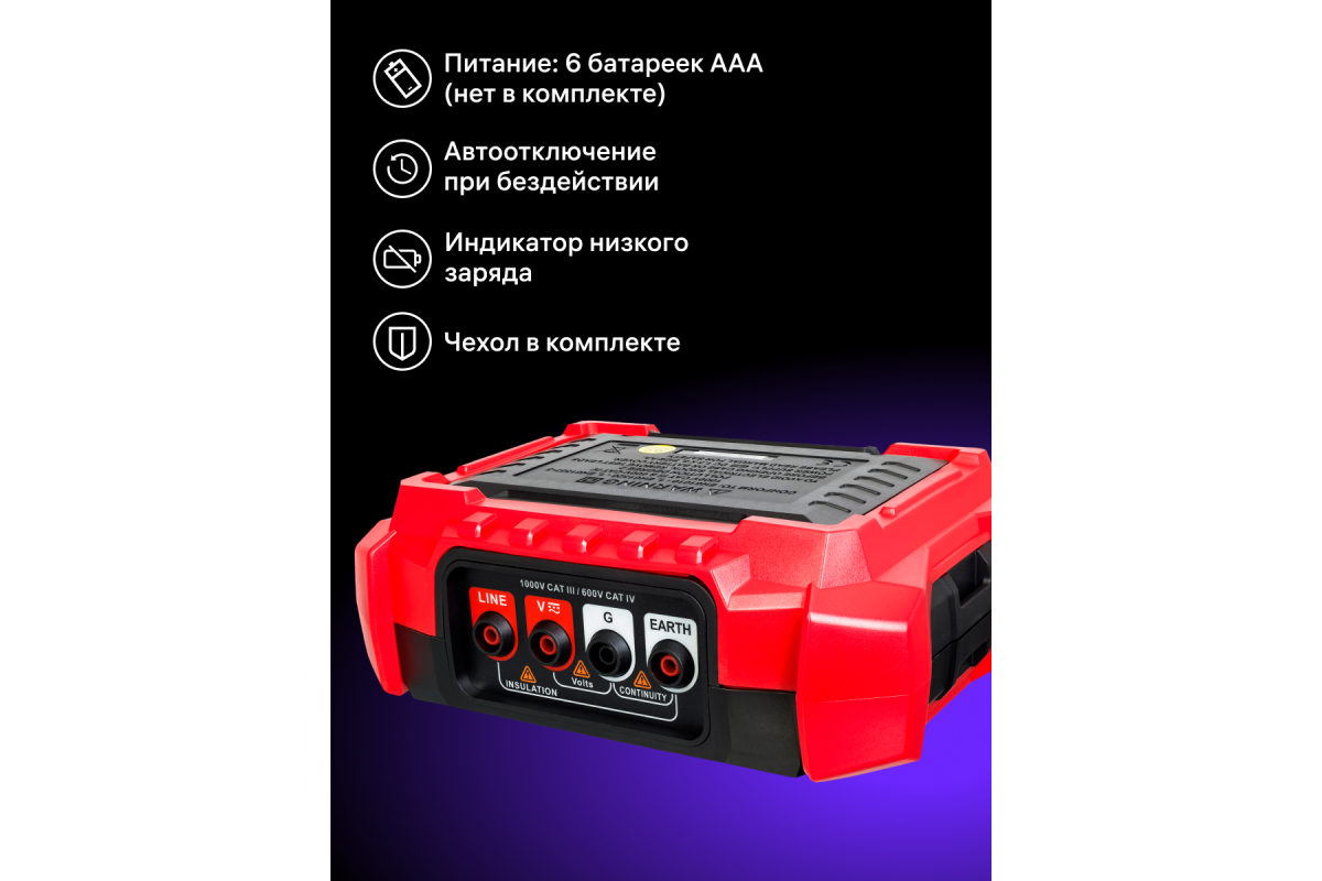 • Рабочие напряжения: 100, 250, 500, 1000 и 2500 В