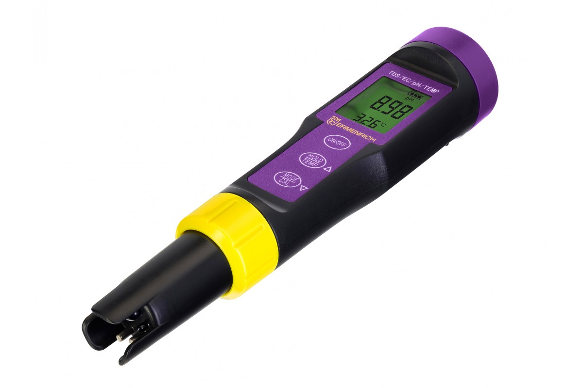 - Диапазон измерения0–14 pH, 0–200000 ppm, 10,1–200 ppt, 1–199990 мкС/см, 0… 60°C