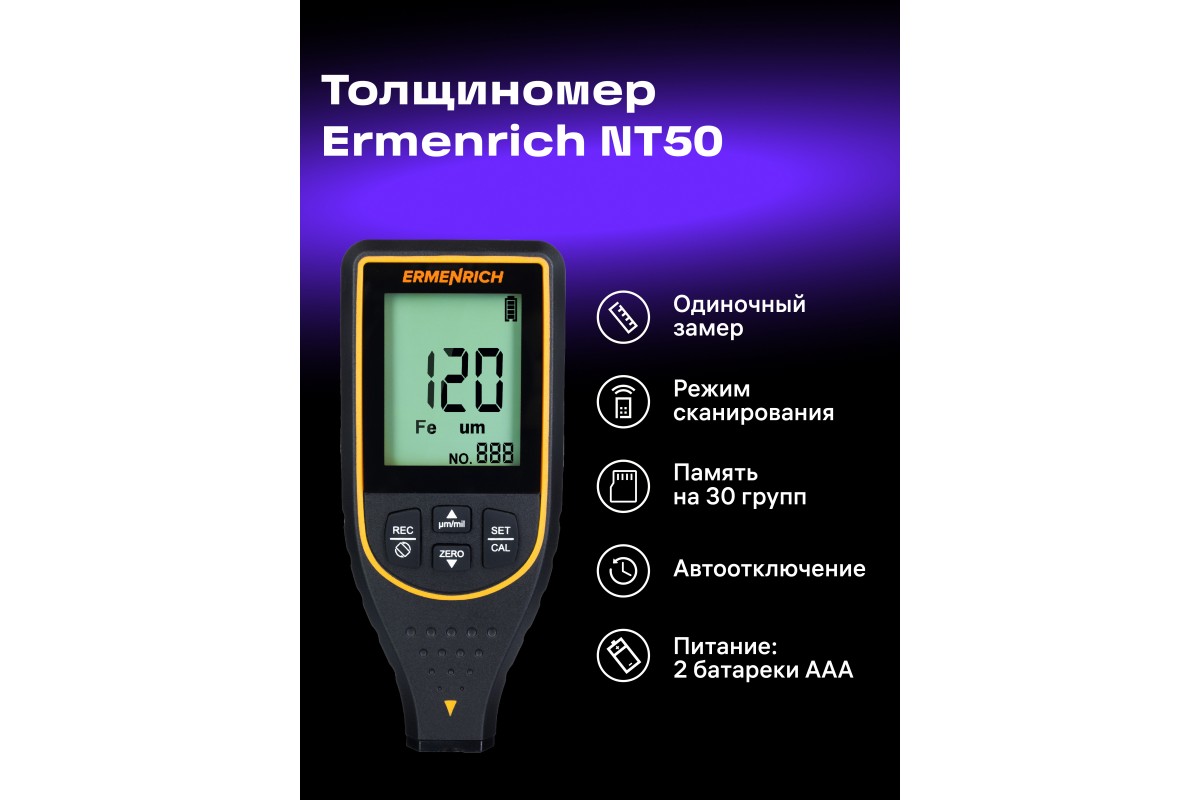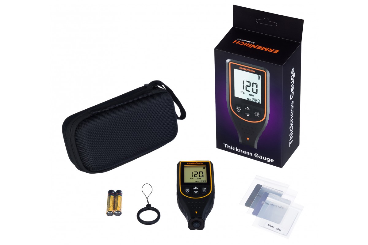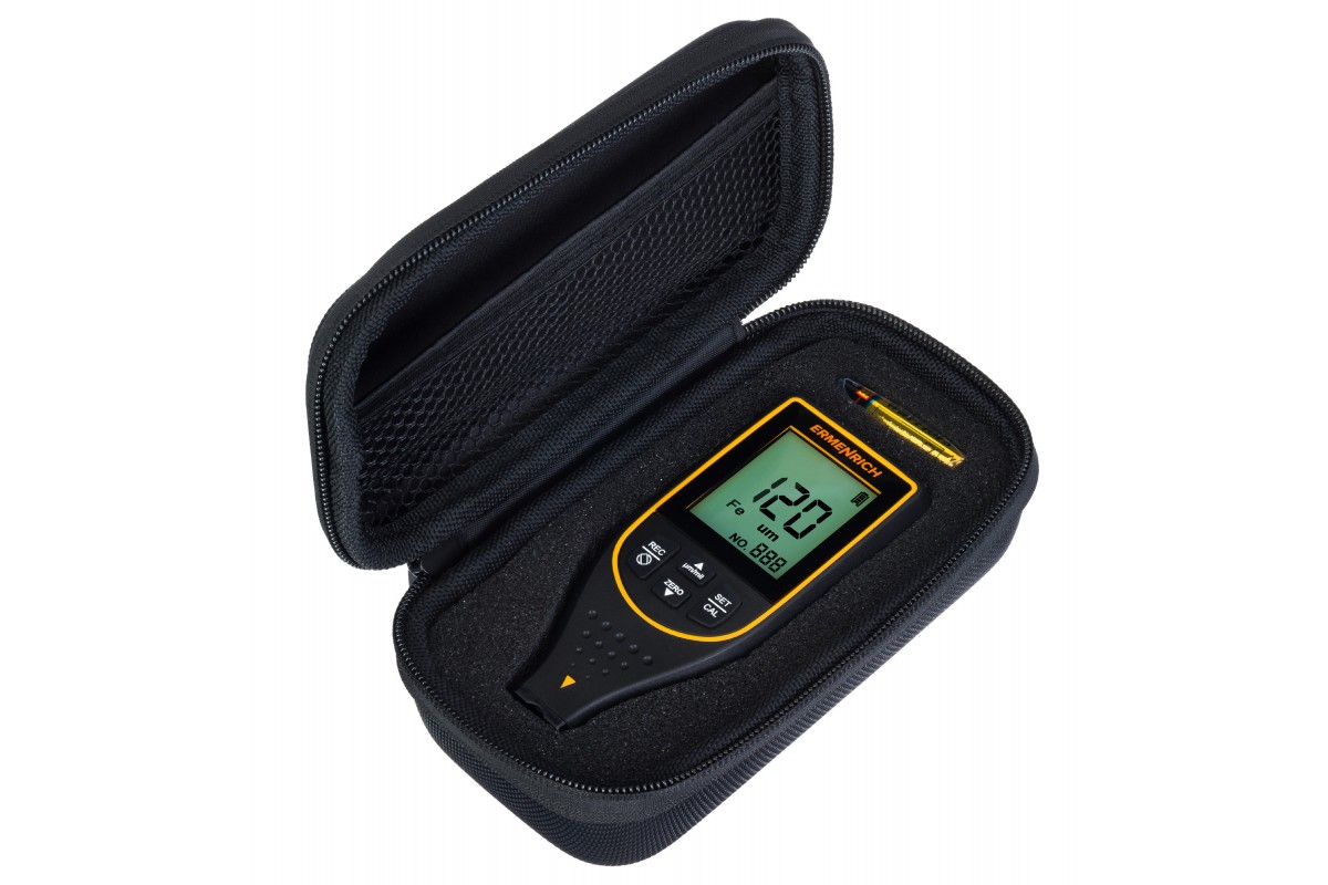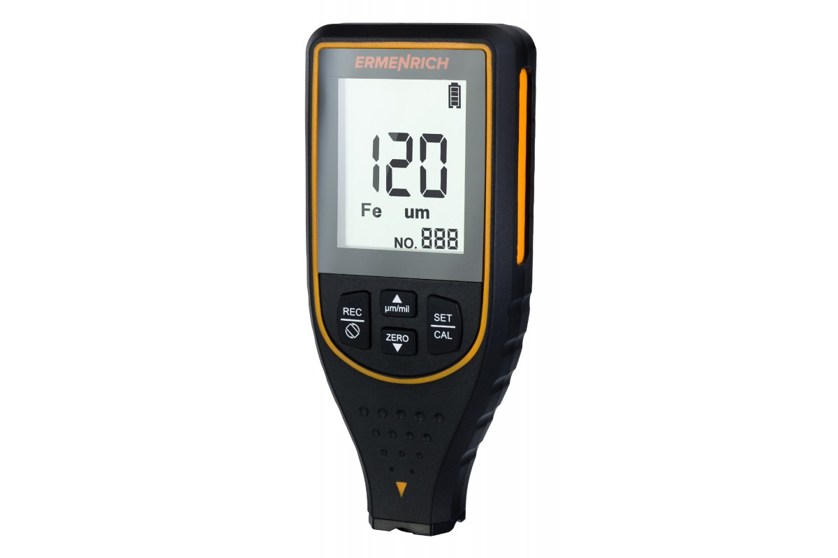 С помощью толщиномера можно проводить измерения толщины лакокрасочных и других типов покрытий, которые нанесены на металлические основания. Основание может быть как из черного, так и из цветного металла. Толщиномер Ermenrich NT50 относится к приборам неразрушающего контроля, т. е. при его использовании не происходит повреждения покрытия: сенсор лишь немного касается поверхности.