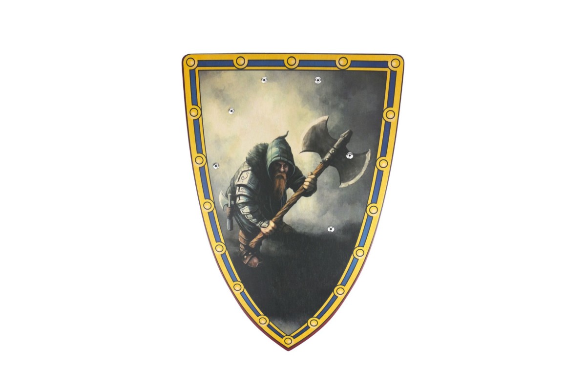 Детский щит круглый изготовлен из березовой фанеры с рукояткой из натуральной кожи. Отлично подходит для ролевых игр, в которых ребенок сможет почувствовать себя рыцарем, викингом, воином. Каждый щит обладает уникальным дизайном, чтобы привлечь внимание и воодушевить вашего ребенка. Отшлифован и покрашен. Не имеет заусенцев и готов к игре.