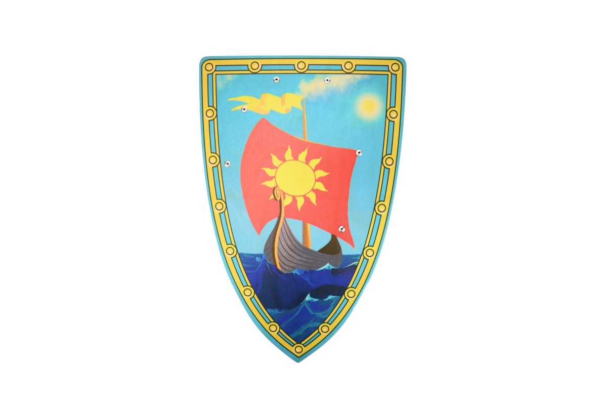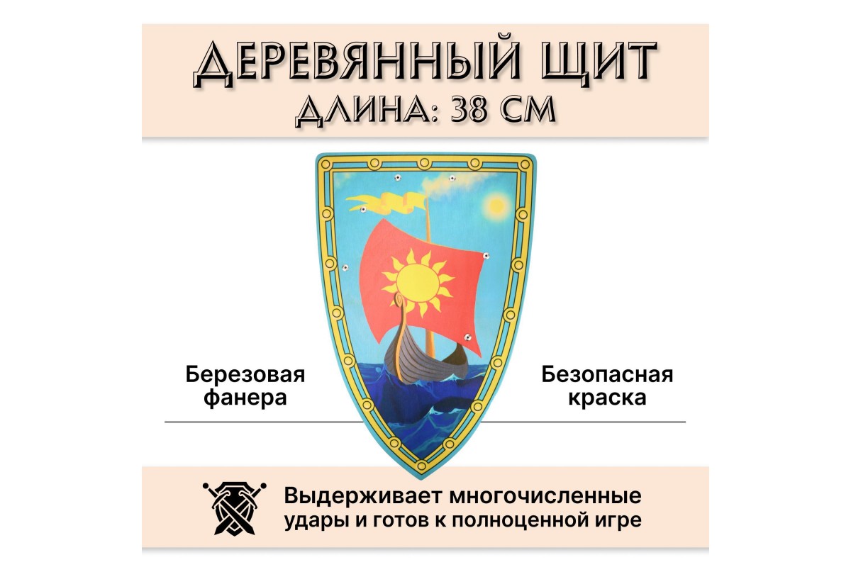Детский щит треугольный изготовлен из березовой фанеры с рукояткой из натуральной кожи. Отшлифован и покрашен. Не имеет заусенцев и готов к игре.