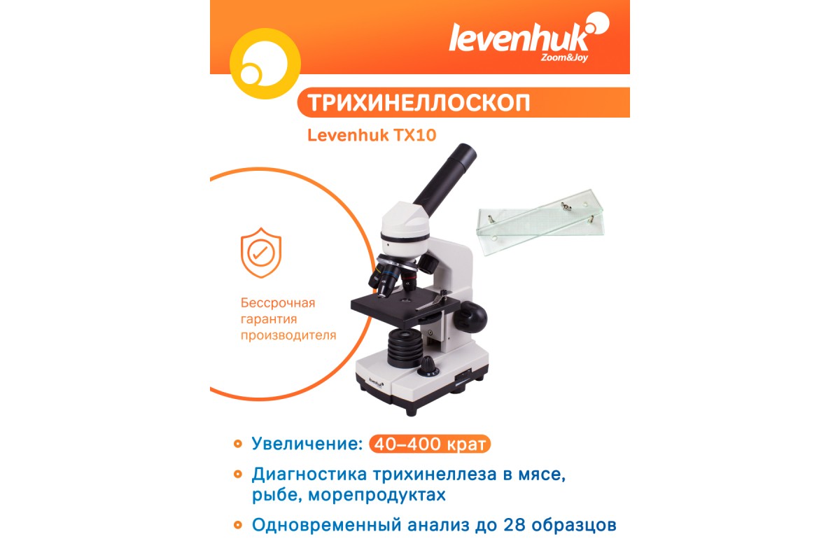Трихинеллоскоп Levenhuk TX10 – оптический прибор для визуального анализа мяса, рыбы и моллюсков на наличие паразитов. С его помощью можно обнаружить в образцах мяса диких и сельскохозяйственных животных трихинелл – возбудителей опасного заболевания трихинеллез. Проведение анализа позволяет избежать поступления зараженного мяса в пищу и на предприятия пищевой промышленности. Трихинеллоскоп отлично проявит себя в учреждениях ветеринарно-санитарной экспертизы, на свиноводческих фермах, в охотничьих хозяйствах. Благодаря портативному характеру прибора его можно использовать в полевых условиях, что актуально при охоте на кабанов, медведей и другую дичь.