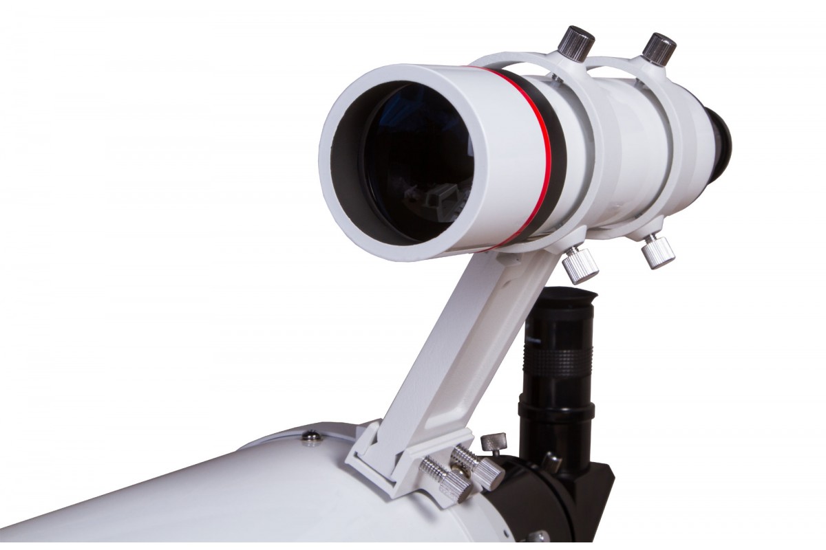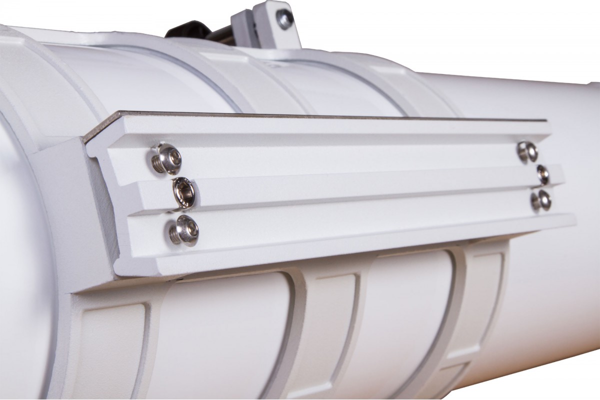 Оптическая труба снабжена креплением «ласточкин хвост». Благодаря стальным направляющим оно более надежно, чем классические варианты этого крепления. Фокусер позволяет устанавливать оптические аксессуары с посадочным диаметром 1,25" и 2" – при помощи комплектных адаптеров. Есть и T2-резьба, необходимая для фиксирования цифровой фотокамеры (Т2-кольцо приобретается отдельно). Крепежные кольца снабжены удобной ручкой для переноски трубы и резьбовым креплением 1/4".
