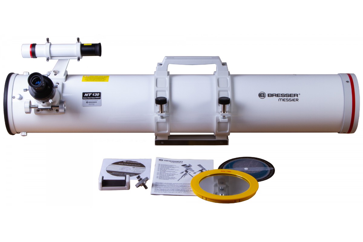 Bresser Messier NT-130/1000 – рефлектор Ньютона с апертурой 130 мм. Благодаря хорошей светособирающей способности он подходит для изучения слабых объектов дальнего космоса. В эту оптическую трубу можно рассматривать туманности, галактики, звездные скопления и двойные звезды. Телескоп можно посоветовать амбициозным новичкам, которые хотят не только наблюдать Луну и планеты Солнечной системы, но и заглянуть в дальние уголки нашей Вселенной.