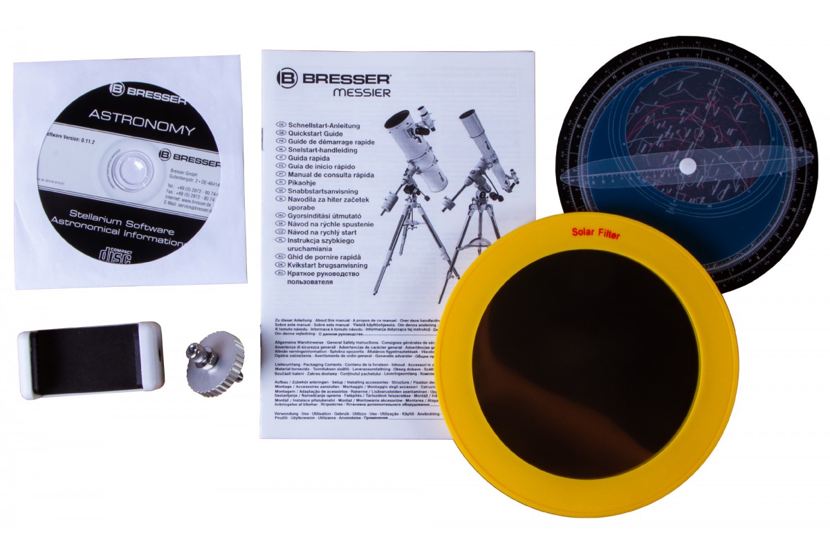 Рефлектор Ньютона лучше всего проявит себя вдали от городской засветки, поэтому рекомендуем вести наблюдения в Bresser Messier NT-130/1000 на природе. В качестве монтировки подойдет любая со средней и большой грузоподъемностью, имеющая крепежную рейку «ласточкин хвост». В фокусер ОТА можно устанавливать аксессуары с посадочным диаметром 1,25 или 2 дюйма – необходимые переходники уже включены в комплектацию, также есть Т2-резьба.