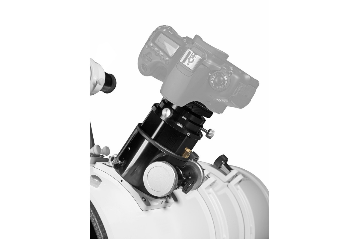 Основная особенность оптической трубы – реечный фокусер Hexafoc. Он надежный и имеет плавный ход. Но главное – благодаря большому световому диаметру в 2,5" он пропускает много света и убирает затемнения по краям изображения, которые часто наблюдаются в телескопах с обычными фокусерами. В телескоп можно устанавливать оптические аксессуары с посадочным диаметром 1,25" и 2", есть резьба под Т2-кольцо.