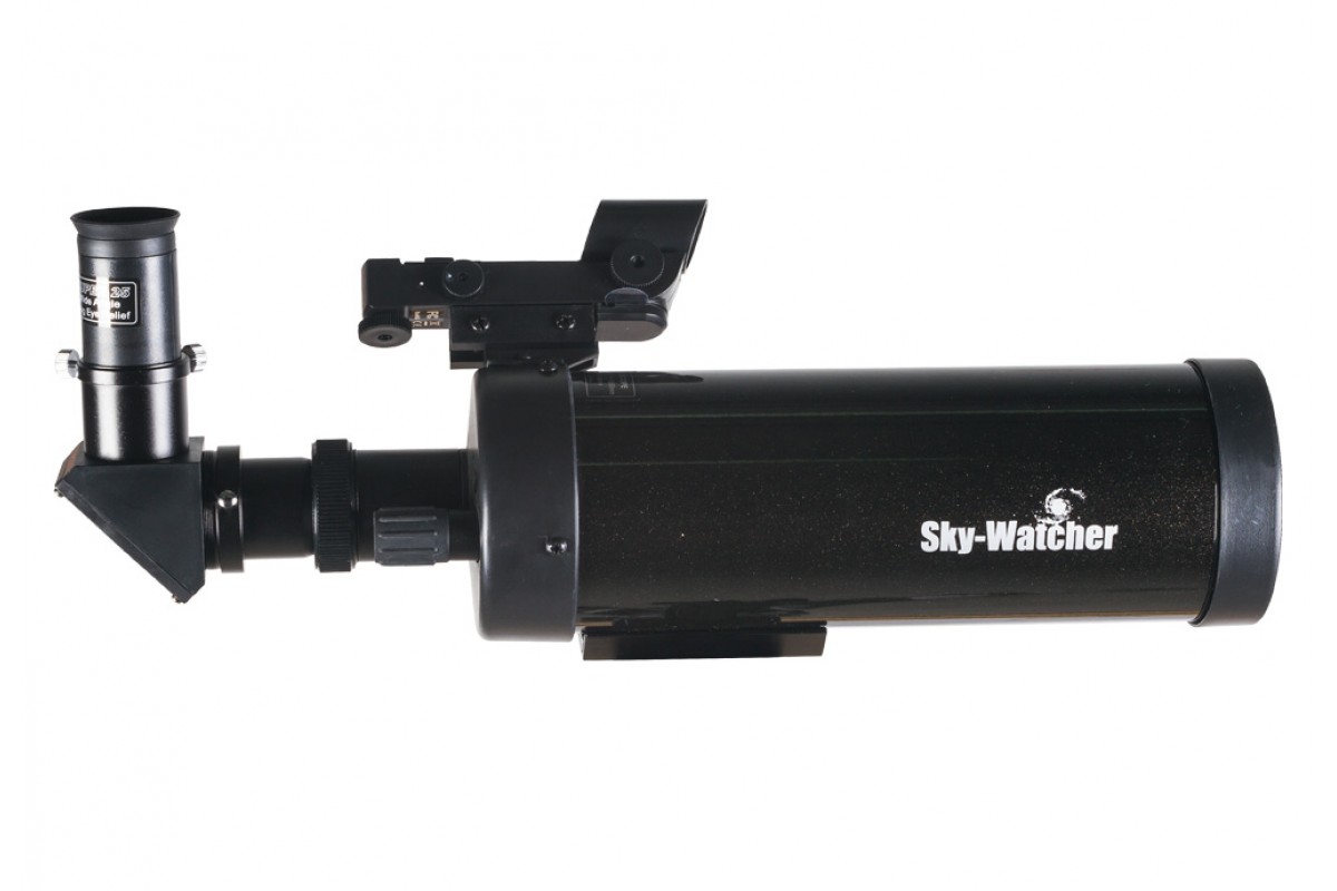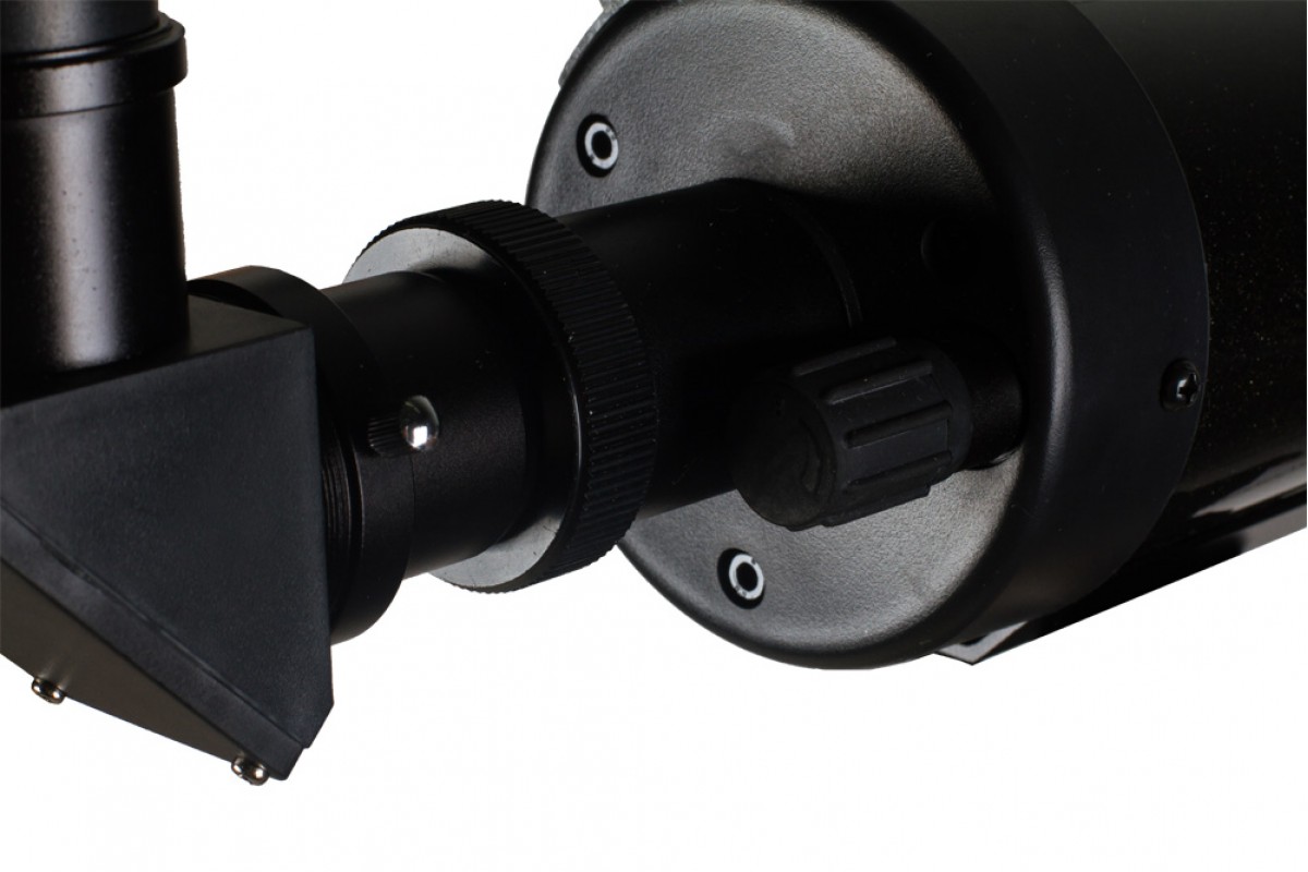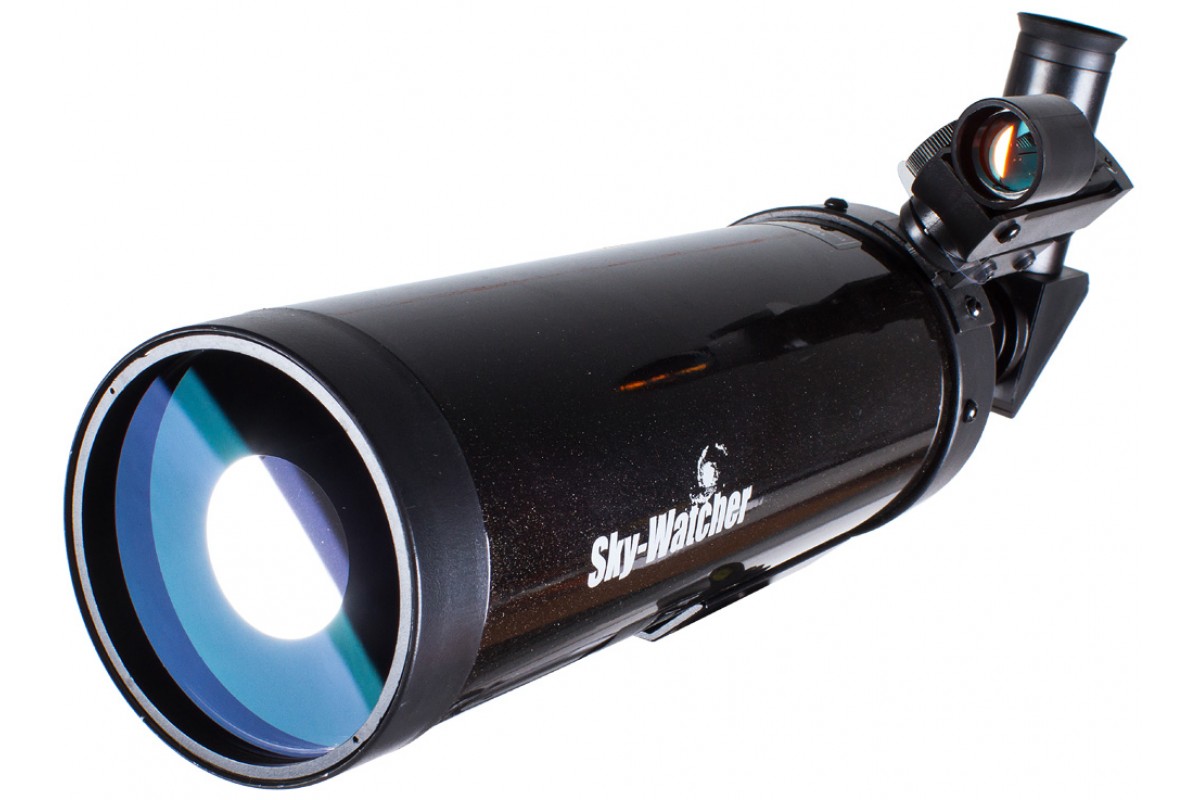 Эта модель собрана по схеме Максутова-Кассегрена, поэтому аберрации практически отсутствуют. В комплект входят окуляры с фокусным расстоянием 25 мм и 10 мм. Первый в большей степени подходит для обзорных наблюдений, а второй лучше использовать для более детального изучения небесных тел. Искатель с красной точкой поможет быстро навестись на любой интересующий вас объект. Труба комплектуется диагональным зеркалом, которое позволяет вести наблюдения из наиболее удобного положения.