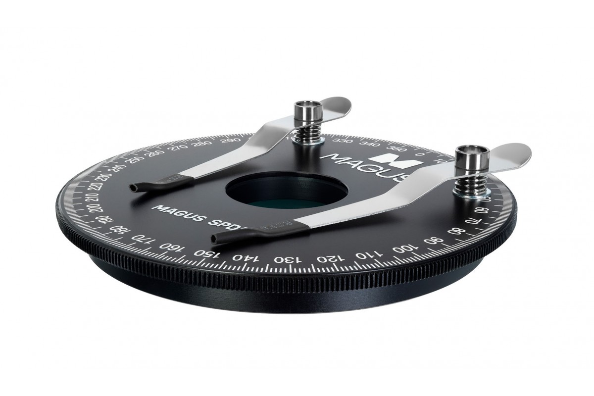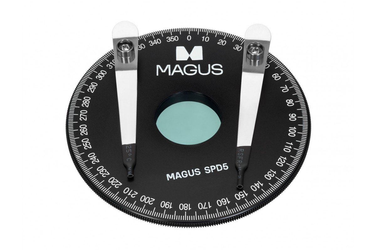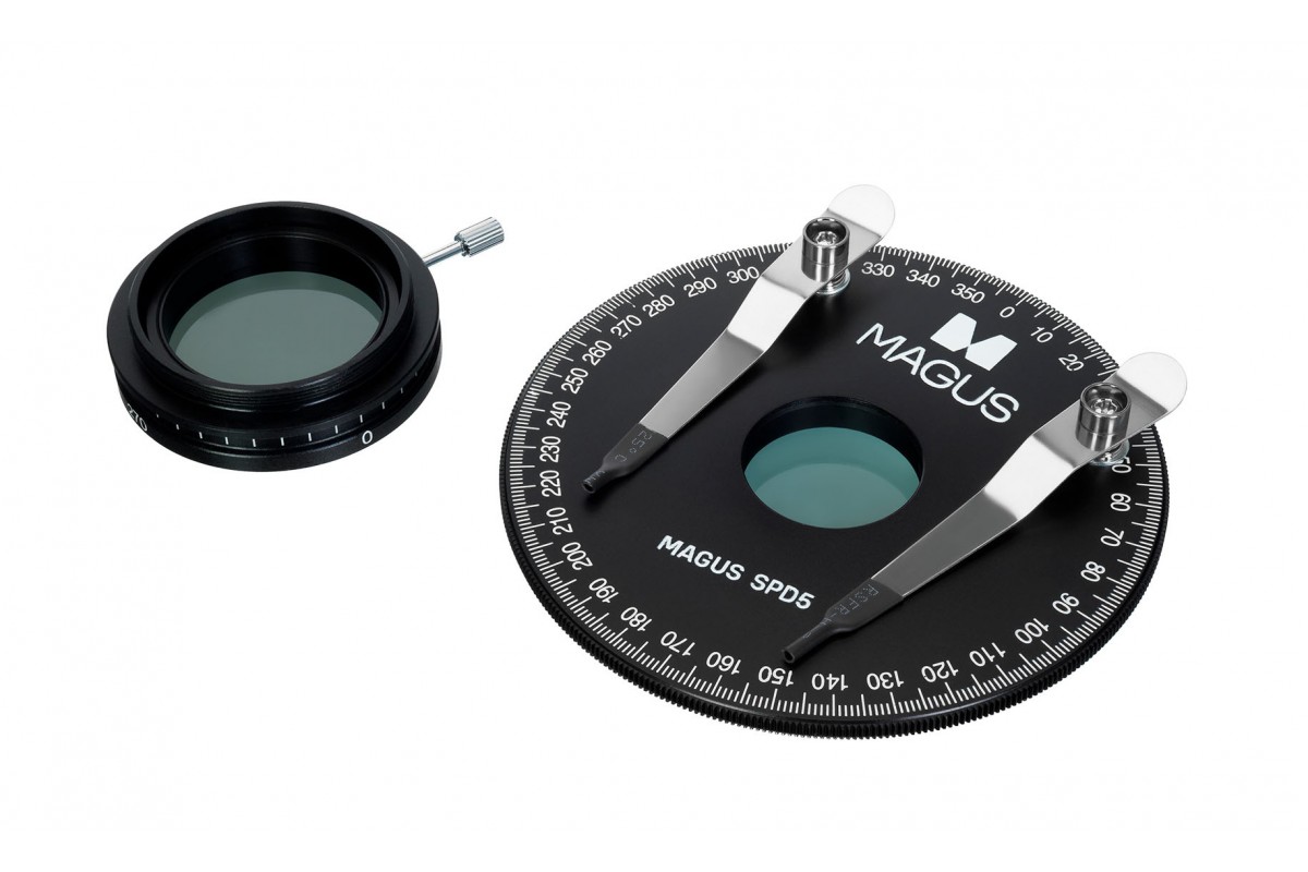 MAGUS SPD5 – незаменимый инструмент в изучении анизотропных образцов методом поляризованного света. Устройство, интегрированное в конструкцию стереоскопического микроскопа, обеспечивает тонкую настройку света за счет регулирования положения поляризатора относительно анализатора. Чтобы получить полное затемнение, достаточно сонастроить части механизма взаимно перпендикулярно.