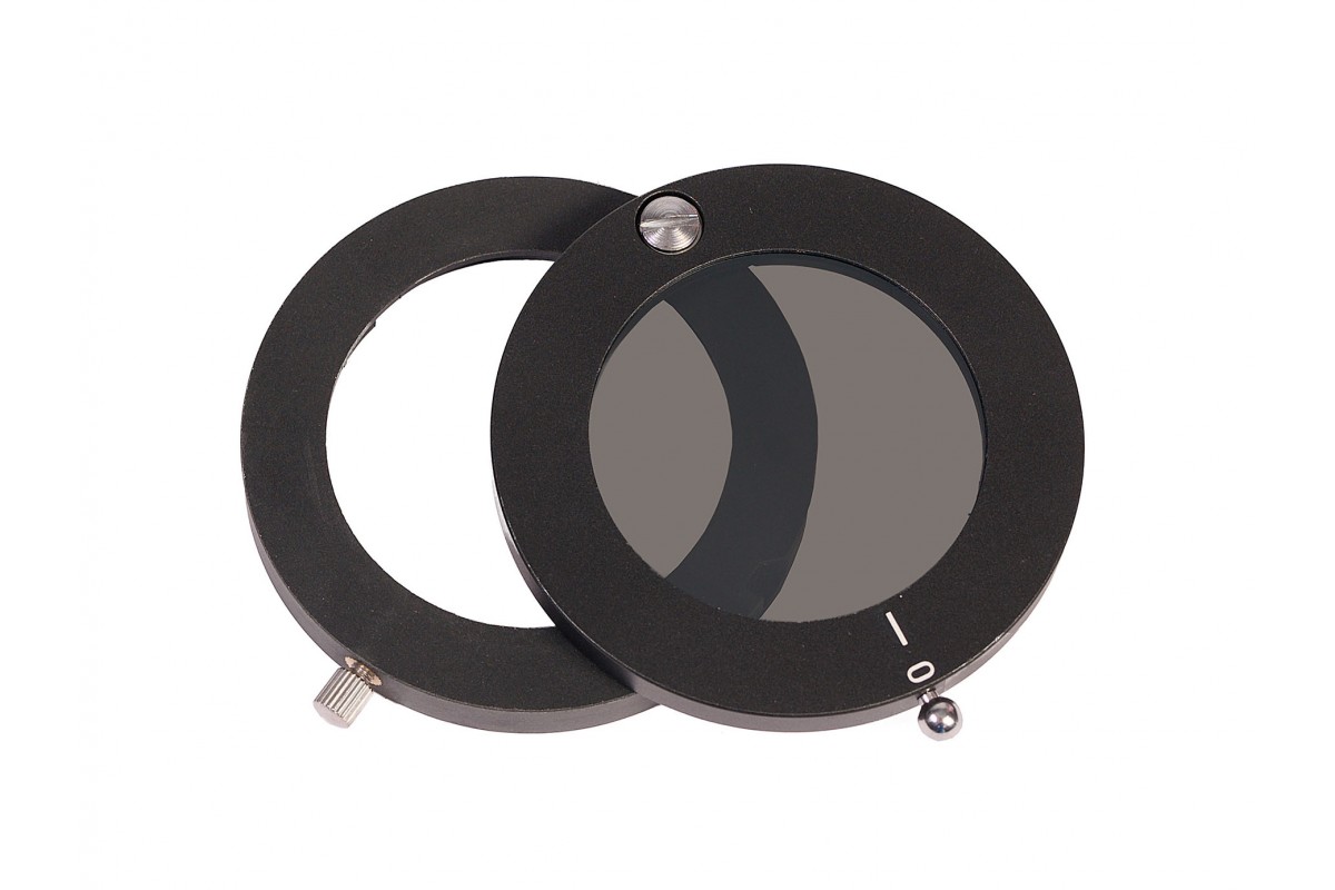 Монтаж устройства на микроскоп несложен: анализатор фиксируют в слоте, расположенным над револьверным устройством, а поляризатор устанавливают на коллектор. После этого вращением поляризатора определяют количество проходящего света. Если анализатор и поляризатор установлены параллельно друг другу (положение «на себя), то свет проходит без ограничений, а если перпендикулярно (положение «вбок») – светопропускание прекращается и наблюдается эффект полного затемнения. Промежуточные значения угла соответствуют частичному светопропусканию.