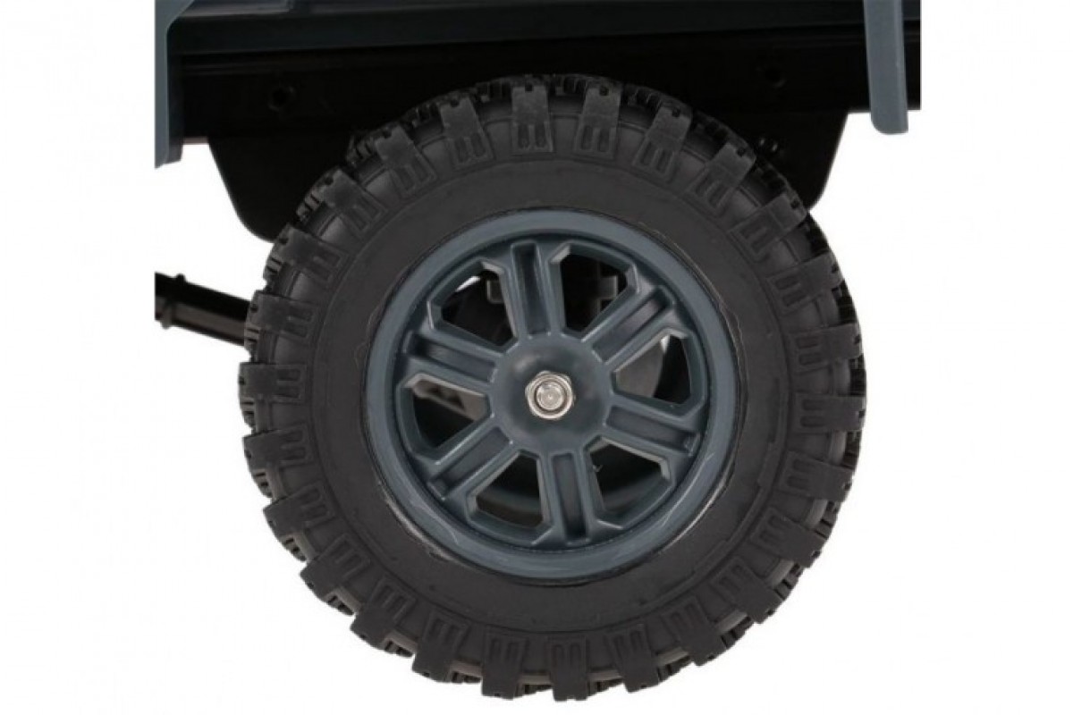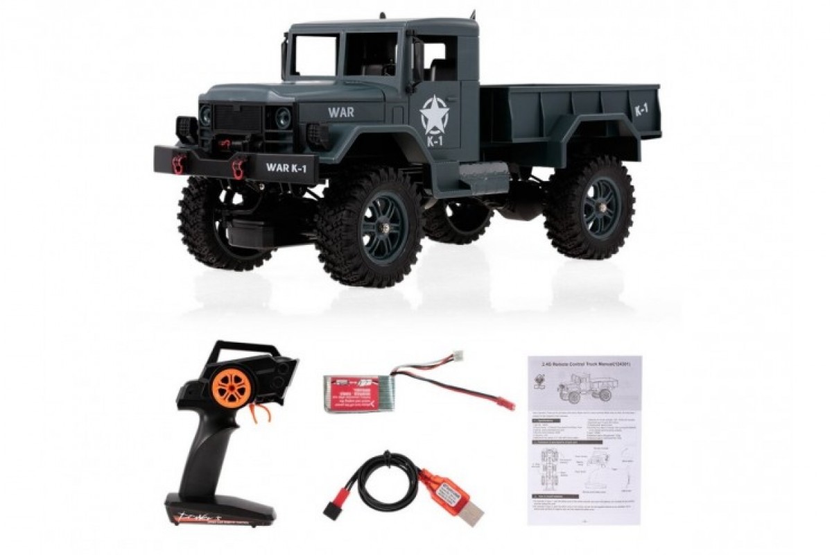 Радиоуправляемый американский военный грузовик выпускается в различных вариантах окраски, выполнен в масштабе 1/12, имеет полный карданный привод и прочные дифференциалы. Мосты установлены на металлических рессорах, что позволяет комфортно перевозить различные предметы весом до 1.2 килограмма по неровной дороге. Колеса с мягкими резиновыми шинами с агрессивным протектором позволяют миниатюрному грузовику без проблем преодолевать бездорожье.