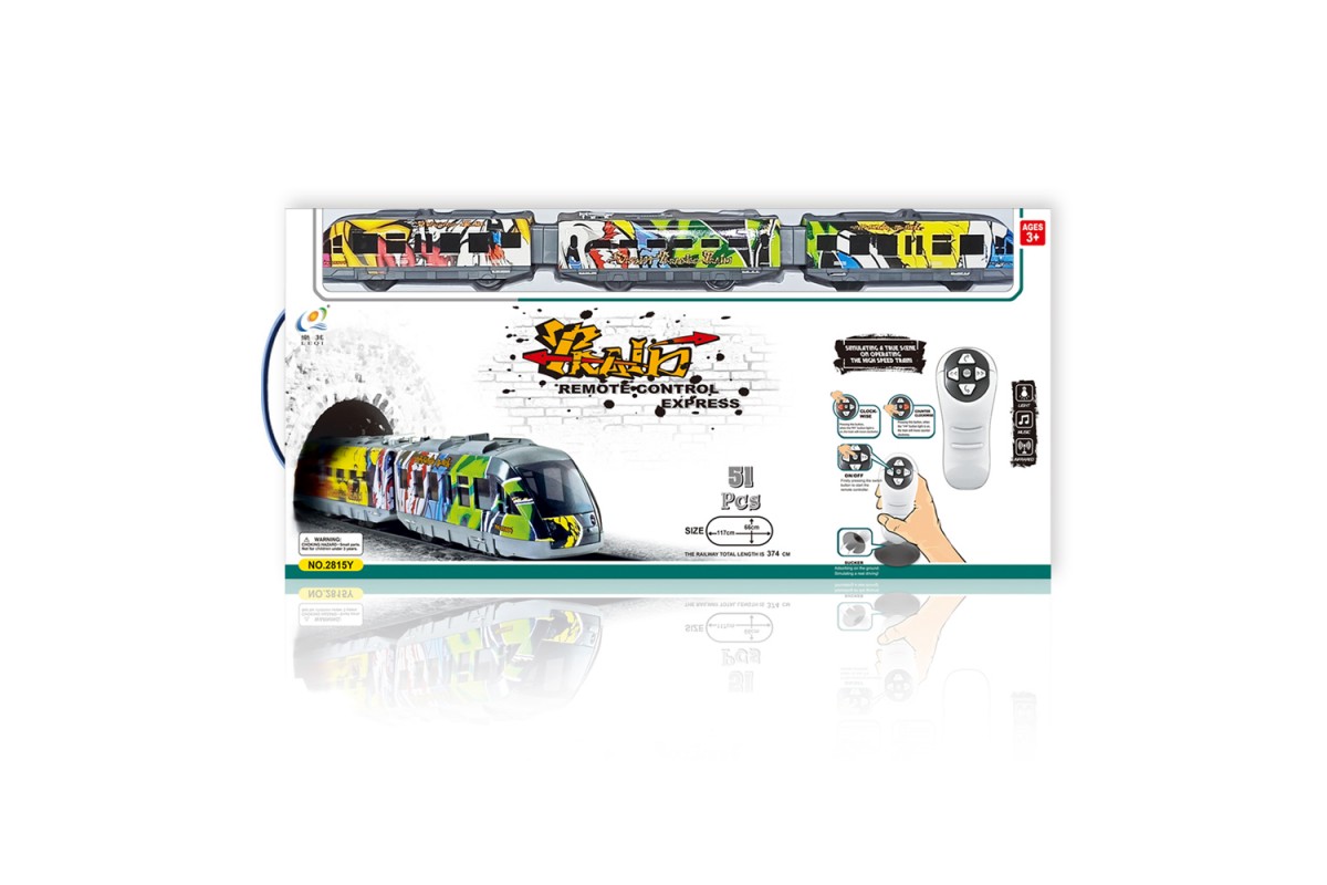 Железная дорога с пультом управления (длина полотна 374 см, свет, звук) - 2815Y представляет собой целый игрушечный комплекс, способный заинтересовать ребенка возможностью увлекательных реалистичных игр. Однако, перед тем, как приступить к развлечению, необходимо собрать воедино не только детали рельс, но и элементы поезда. Игрушка состоит из трех вагонов и выглядит очень стильно. Ее корпус, окрашенный в синий с серым цвет, отличается тонкой детализированной проработкой. Контролировать движение скоростного супер-экспресса можно с помощью специального пульта управления и вручную. Во время игры можно включать специальные световые и звуковые эффекты, также играют две забавные мелодии.