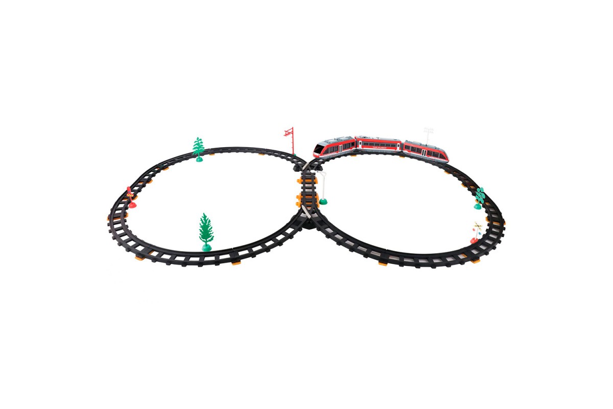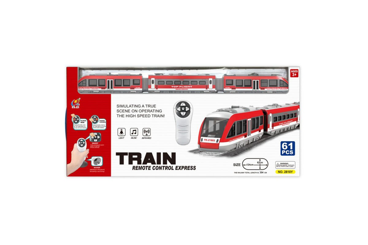 Железная дорога с пультом управления (длина полотна 387 см, свет, звук) - 2810Y представляет собой целый игрушечный комплекс, способный заинтересовать ребенка возможностью увлекательных реалистичных игр. Однако, перед тем, как приступить к развлечению, необходимо собрать воедино не только детали рельс, но и элементы поезда. Игрушка состоит из трех вагонов и выглядит очень стильно. Ее корпус, окрашенный в красный с серым цвет, отличается тонкой детализированной проработкой. Контролировать движение скоростного супер-экспресса можно с помощью специального пульта управления и вручную. Во время игры можно включать специальные световые и звуковые эффекты, также играют две забавные мелодии.
