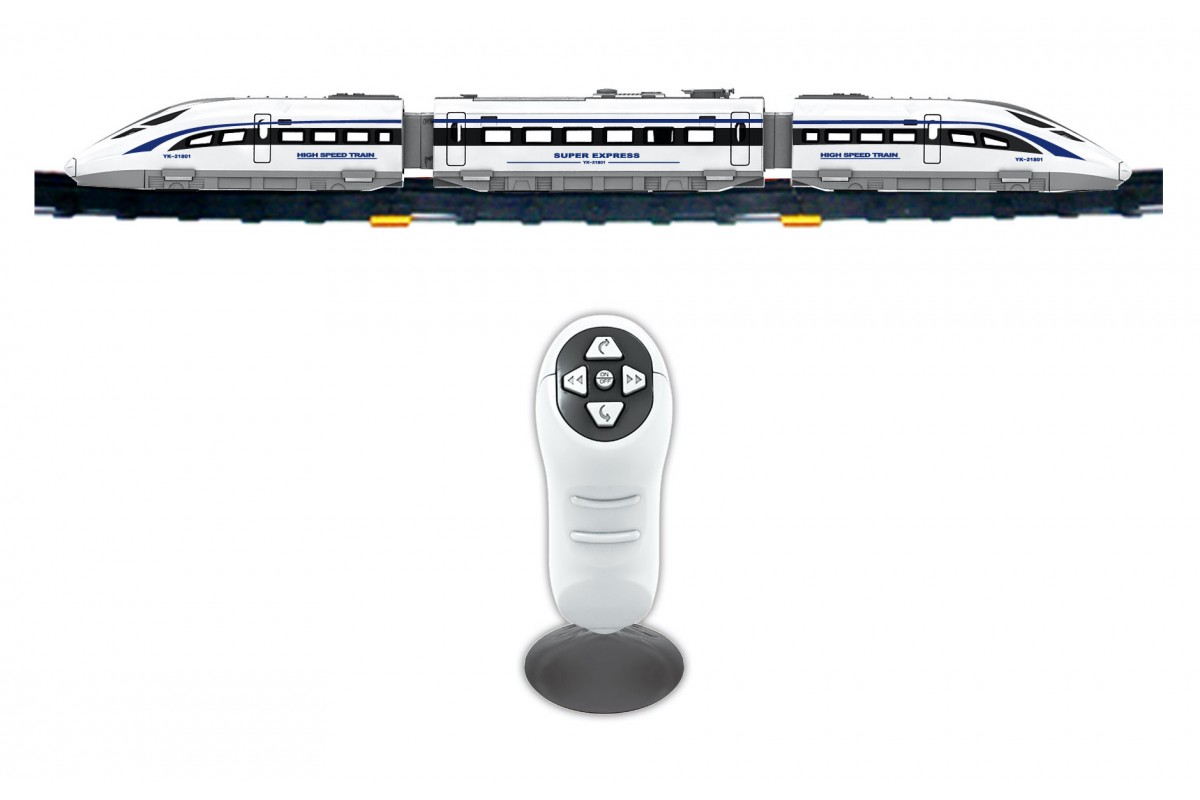 Игрушка состоит из трех вагонов и выглядит очень стильно. Ее корпус, окрашенный в белый цвет, отличается тонкой детализированной проработкой. Контролировать движение скоростного супер-экспресса можно с помощью специального пульта управления. Во время игры можно включать специальные световые и звуковые эффекты.