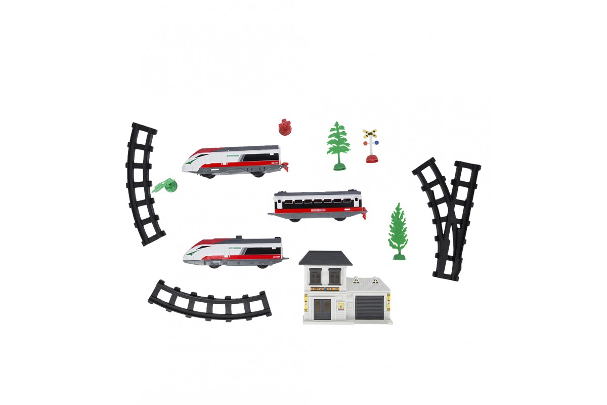 - Поезд (1 комплект: 2 локомотива 17 см., вагон 15 см., 2 сцепки);