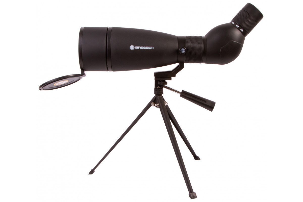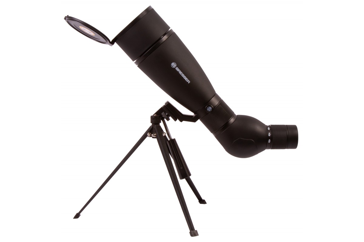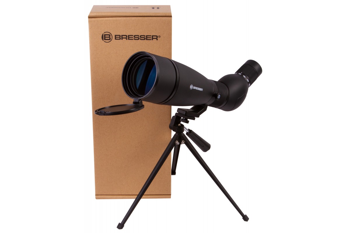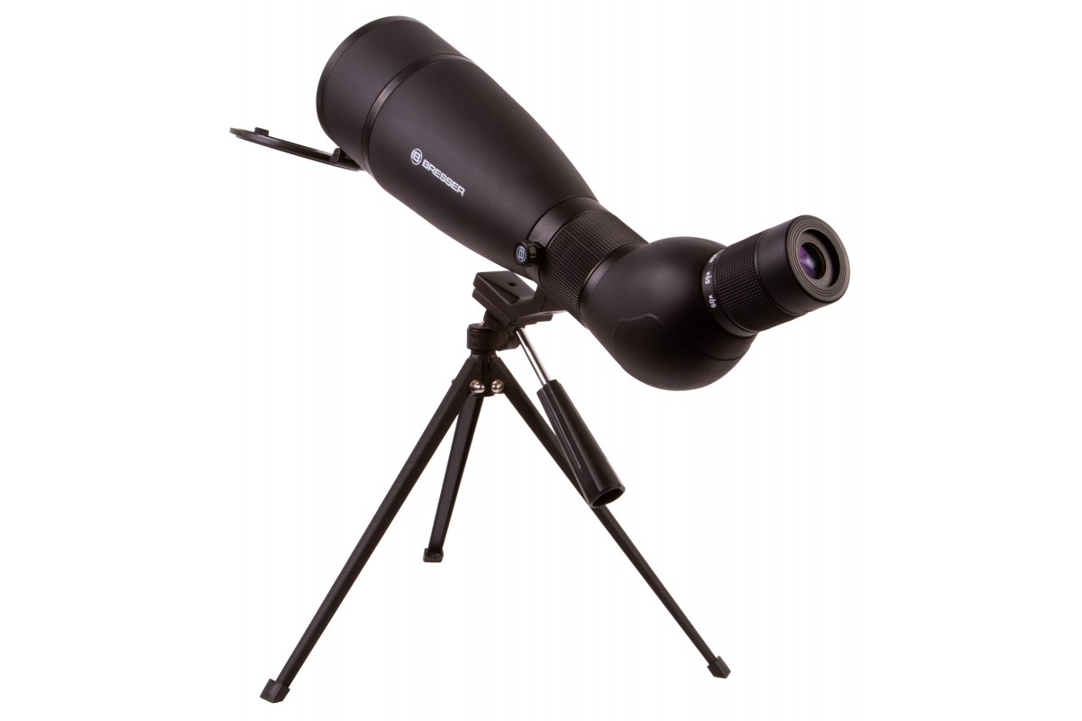 Зрительная труба Bresser Travel 20–60x80 с наклонно расположенным окуляром одинаково хорошо подходит и для обзорных, и для прицельных наблюдений. И все благодаря изменяемому увеличению, которое позволяет оптимальным образом настраивать оптику для решения разных задач на местности. Прибор разработан специально для походов и путешествий, поэтому в комплектацию включены чехол и небольшой настольный штатив. Дополнительные аксессуары весят немного и значительно упрощают работу с прибором в полевых условиях.