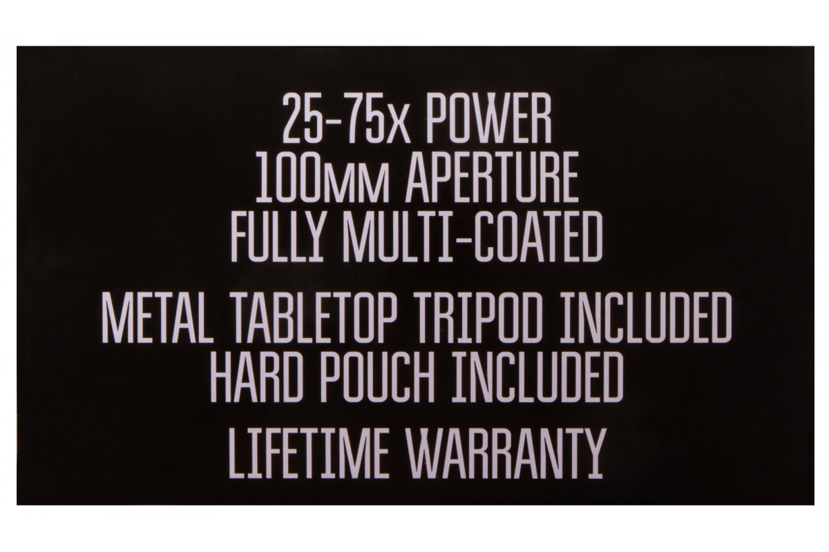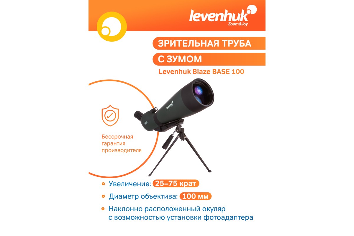 Зрительная труба Levenhuk Blaze BASE 100 – это 100-миллиметровый объектив и увеличение в диапазоне от 25 до 75 крат. Светосилы оптического прибора хватает для передачи картинки даже в сумерках и на рассвете, а широкий диапазон увеличения позволяет рассматривать сильно удаленные объекты в мельчайших деталях. Зрительная труба отлично подходит для изучения животных и птиц, природных и городских ландшафтов, а также просмотра спортивных мероприятий на стадионе.