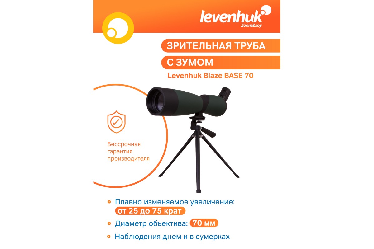 Зрительная труба Levenhuk Blaze BASE 70 подарит вам незабываемые впечатления! Благодаря мощной и светосильной оптике вы сможете рассмотреть мельчайшие детали пейзажей, оперение пролетающих птиц, архитектуру исторических зданий. Этот оптический прибор поможет вам в изучении повадок диких животных и исследовании красот окружающего мира. Благодаря панкратическому объективу вы легко сможете подобрать наиболее подходящее увеличение. А настольный штатив, входящий в комплект поставки, пригодится при длительных стационарных наблюдениях.