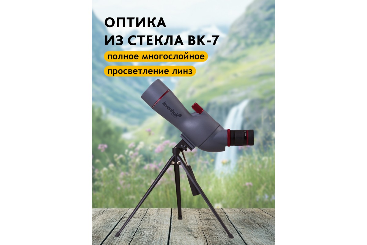 Оптика сделана из стекла BK-7, а линзы защищены несколькими слоями просветления. Окуляр можно снять. Корпус, исключая окуляр, защищен от проникновения частиц пыли и влаги. Для стационарных наблюдений зрительную трубу можно устанавливать на штатив. Подойдет любой фотоштатив с резьбовым креплением 1/4". В комплект уже включен небольшой настольный штатив – он помогает избежать вибраций и обеспечивает стабильное положение трубы.