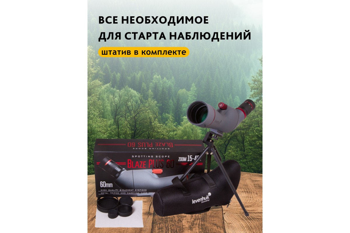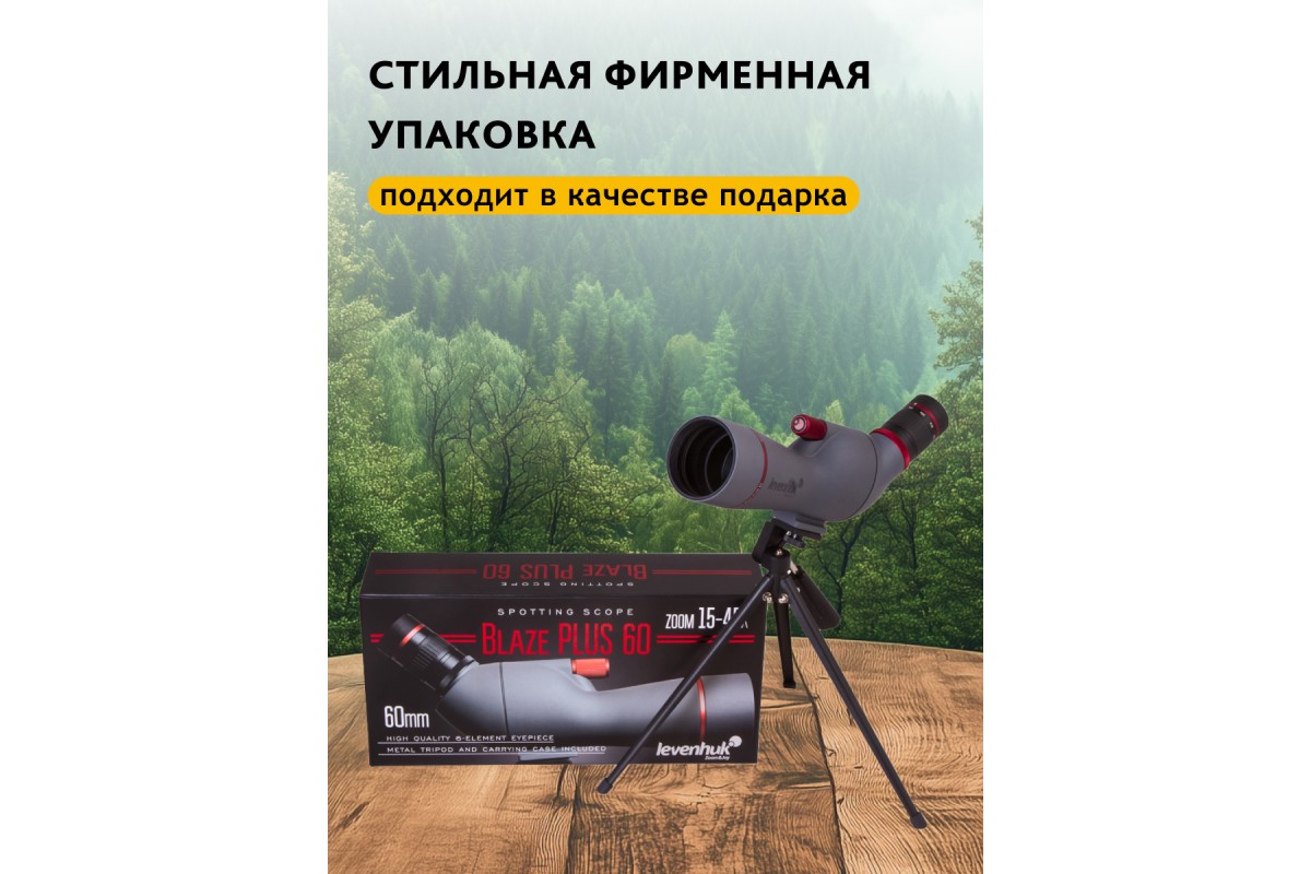 Зрительная труба Levenhuk Blaze PLUS 60 – оптический прибор, который вдохновит вас на изучение природы и городских ландшафтов. Она передает картинку высокого качества в естественных цветах и подходит для фотографирования. Внутри установлен панкратический объектив, с помощью которого можно выбирать подходящее для наблюдений увеличение в диапазоне от 15 до 45 крат. Levenhuk Blaze PLUS 60 – прекрасный выбор для охоты, рыбалки и походов.